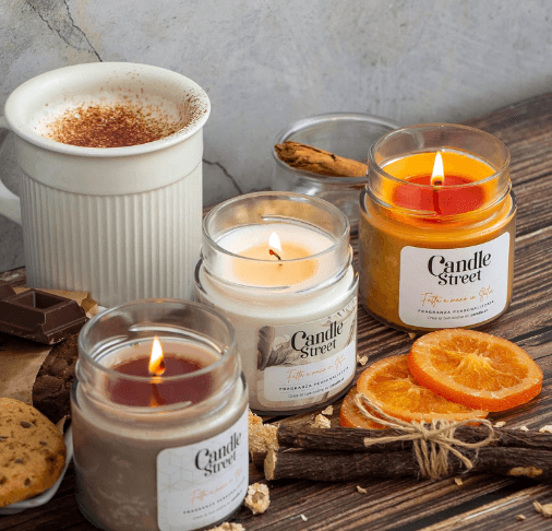 Le candele di Candle Street sono realizzate a mano in Italia utilizzando materiali sostenibili come il vetro per il barattolo, cera a base di soia e stoppini in cotone o legno.